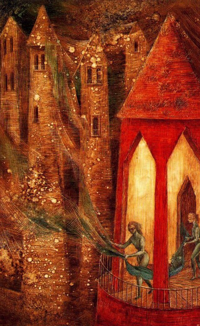 A matador shows his collie the airship. Unimpressed, as all dogs are by flying ships, it tries to bite its lead instead. ‘If only collies knew the joys of sitting above the earth....’ he ponders to himself out loud. He returns to tying up the frost. The currents from the airship and the disinterested dog, making his task near on impossible.